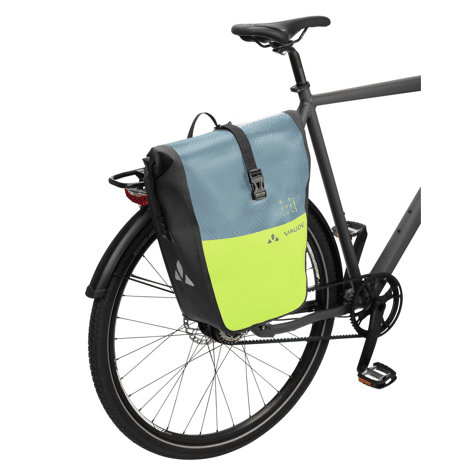 Vous vous rendez au travail ou vous parcourez le monde à vélo ? Vous allez adorer cette sacoche pour la roue arrière ! Cette sacoche arrière étanche est fabriquée à partir de matériaux recyclés au siège allemand de VAUDE près du lac de Constance. Elle peut être ajustée à la taille souhaitée grâce à sa fermeture à enroulement et est absolument étanche. Une poche intérieure avec fermeture éclair permet de ranger en toute sécurité de petits objets ou documents. La sacoche arrière simple est équipée d'un panneau arrière robuste et peut être fixée en toute sécurité à droite ou à gauche sur votre porte-bagages grâce au système de crochets QMR 2.0. Les crochets peuvent être facilement réglés à l'aide de molettes conviviales et peuvent être verrouillés directement sur le crochet QMR à l'aide d'un antivol en U (par exemple TSA Lock II). Imprimé avec des éléments réfléchissants. La livraison comprend un sac de 24 l qui peut être monté sur n'importe quel porte-bagages avec un diamètre de tube jusqu'à 16 mm. L'Aqua Back Single peut être complété par l'un des sacs accessoires pratiques suivants : SortYour Back, SortYour Business et le sac Addita. Une bandoulière amovible permet un transport confortable sur l'épaule. Le sac est fabriqué avec une finition Eco Finish écologique et hydrofuge sans utilisation de fluorocarbures (PFC). Le label VAUDE Green Shape est synonyme de produits fonctionnels et respectueux de l'environnement fabriqués à partir de matériaux durables.