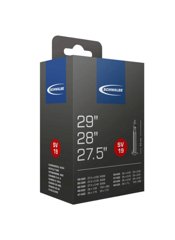 La Schwalbe SV19L est une chambre à air légère et fiable, spécialement conçue pour les pneus 29 pouces de section large (2.10" à 3.00").