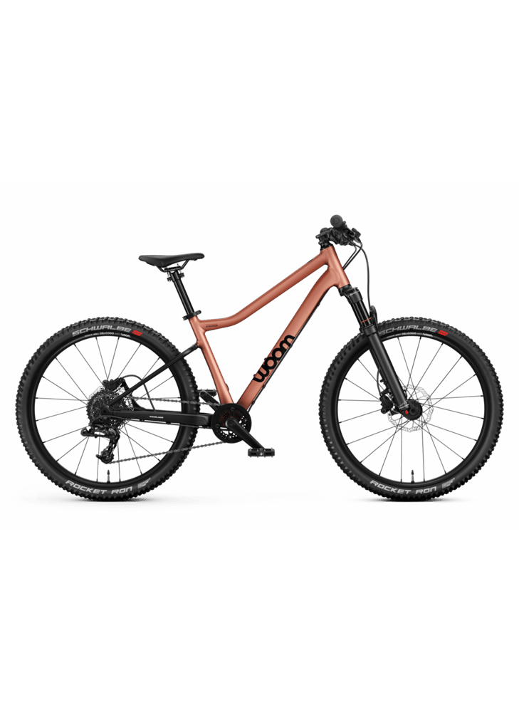 Le vélo tout-terrain 24 pouces ultraléger et robuste avec fourche à suspension, dérailleur à neuf vitesses et freins à disque pour les enfants à partir de sept ans.
